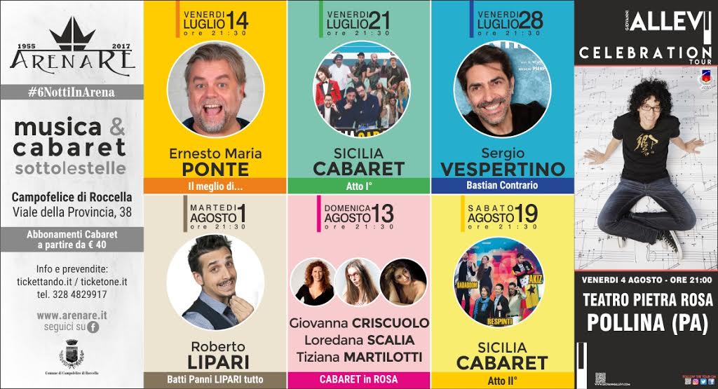 Rassegna stampa di cabaret che si terrà questa estate presso l'Arena Re , Ecco una sfilza di eventi da non perdere suddivisi per categorie, da quelli musicali a quelli culturali in generale, con.